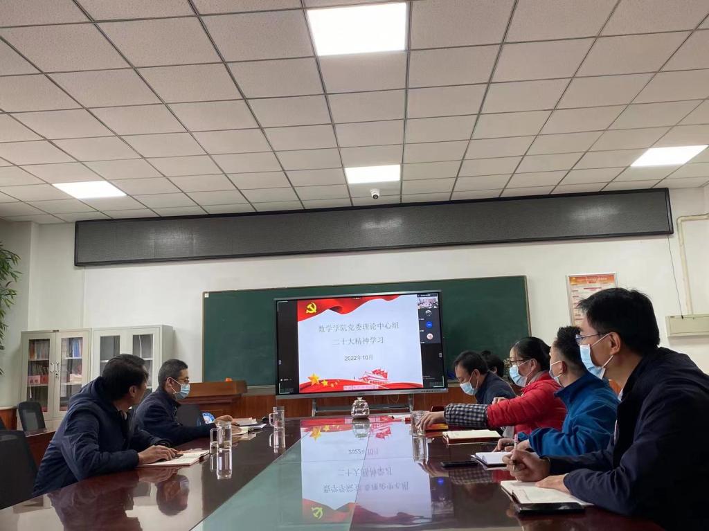 在9号楼六层会议室召开党委理论中心组学习会议,学习二十大精神。学院领导、各支部书记和党员代表参加了会议,院党委书记薛亚奎同志主持会议。