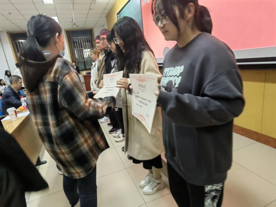 优秀志愿者表彰大会伊使,全体演唱了共青团歌,歌曲激昂,展现了在此次防控疫情中志愿者们积极向上,不怕艰苦的精神。紧接着,大会迎来了最激动人心的时刻——颁奖环节。优秀志愿者们意气风发地站在台上,激动地等待着属于自己的荣耀。由李娜老师将一份份沉甸甸的奖状交到志愿者手中,激励着志愿者们奔赴下一场山海。