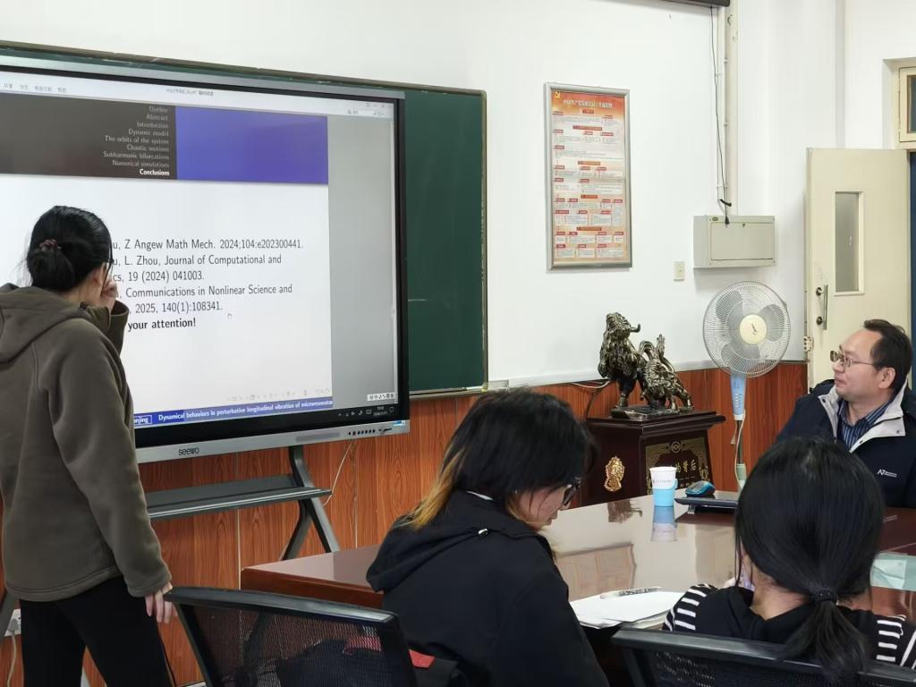 教授,博士生导师,现任南京航空航天大学数学系主任,江苏省数学学会理事,江苏省动力学与控制专委会、非线性振动专委会、智能系统动力学专委会委员的周良强教授对本科生及研究生就扰动行为的动态机制进行讲解。周良强教授的研究可分为5部分:动态模型、系统的运行轨道、混沌行为、次斜分岔、数字模拟。周教授讲述了此项研究的具体过程和研究结果,他及其领导的博士生通过不同的研究方法,推导出了所有类型的同调轨道和次调轨道,建立了三种不同的混沌激励条件,以及相应的混沌特征。他们通过研究证明,数值模拟和理论分析的结果是一致的,这项研究也可以促进微谐振器的发展及其应用,并为类比研究提供了参考,促进了动态模型和相关问题的解决。报告讲解结束后,周教授为本科生讲述了南京航空航天大学的保研条件及考研条件,鼓励本科生树立目标,努力学习,为考取心仪的学校付诸行动,最终实现梦想。