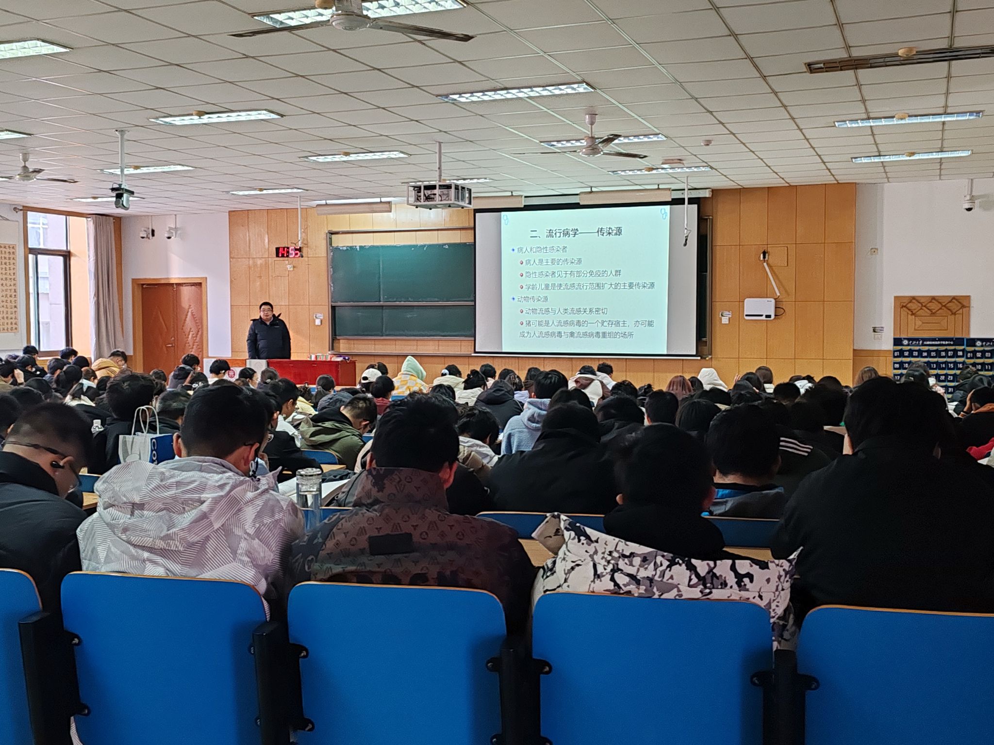 校医院王鹏飞医生以近期呼吸道感染病情况,流感爆发趋势等,阐述了在人口密集的校园环境中开展防治工作的重要性与紧迫性。他深入浅出地讲解流行性感冒的病因,传播途径及典型症状,并着重区分了普通感冒与流行性感冒的本质区别。他结合大学生活的特点,给出了切实可行的预防建议:一、积极接种流感疫苗,是构建免疫屏障最有效的手段;二、保持良好卫生习惯,勤洗手,多通风,科学佩戴口罩;三、注重营养均衡,增强免疫力,避免熬夜透支健康。