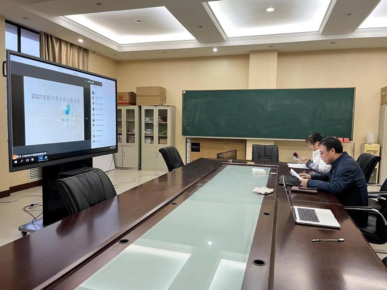 为2021级数学类学生组织专业分流工作宣讲会。王鹏老师、数学与应用数学专业负责人姚林红,信息与计算科学专业负责人薛震出席本次会议,2021级数学类150名学子线上聆听。