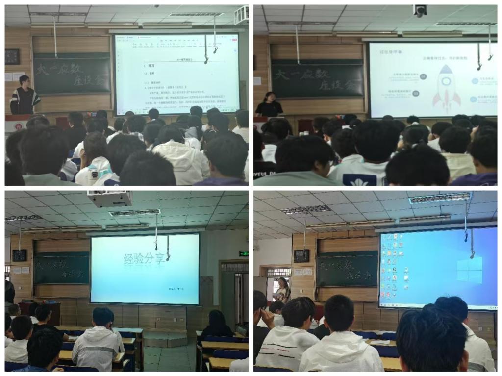 接着由郭俊希同学带来他的考试复习技巧与竞赛经验,他以对专业的认识为切入点,解答了如何正确学习数学分析和高等代数,并推荐了许多好用的网上软件,并且为他们后续专业的学习提供了思路,还分享了他的宝贵竞赛得奖经验,让学弟学妹们在以后学业中确定努力方向。崔川阳同学带来的经验分享,她以自己的每天的学习时间、学习内容为依托,串联起她在每个学科如何合理“挤”出时间,来使自己的学业保持优秀,内容生动形象,浅显易懂,让学弟学妹们可以对比自己的学习规划进行合理且高效的改进。李俊凤同学带来对学业的认识和大学生活的规划,她指出学习没有止境,需要持续不间断地预习和复习,这样才可以避免过度遗忘,并为下一阶段的学习提供良好的基础。她的演讲声音洪亮,震慑人心,给同学们留下了深刻印象,并让他们知道努力的重要性。王晨阳同学带来的好书分享,他指出不管是考试还是竞赛,想要得到高分、写出好文章,必须先看好书,细细揣摩作者的用词、断句,同时要根据自己的水平,制定合理的方案去阅读这些专业课书籍。他以极强的逻辑性向学弟学妹们介绍了很多适合阅读、研做的好书,为同学们提供额外学习的思路。