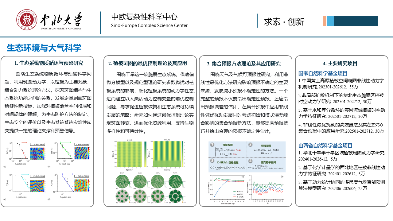 Since its establishment, the center has undertaken 11 National Natural Science Foundation of China projects and over 10 Natural Science Foundation projects of Shanxi Province. Furthermore, the center maintains collaborative partnerships with leading domestic and international institutions, including but not limited to: Institute of Atmospheric Physics, Chinese Academy of Sciences; Shanghai Jiao Tong University; Beijing Normal University; NorthwesternPolytechnical University; Wuhan University; University of Miami (USA).